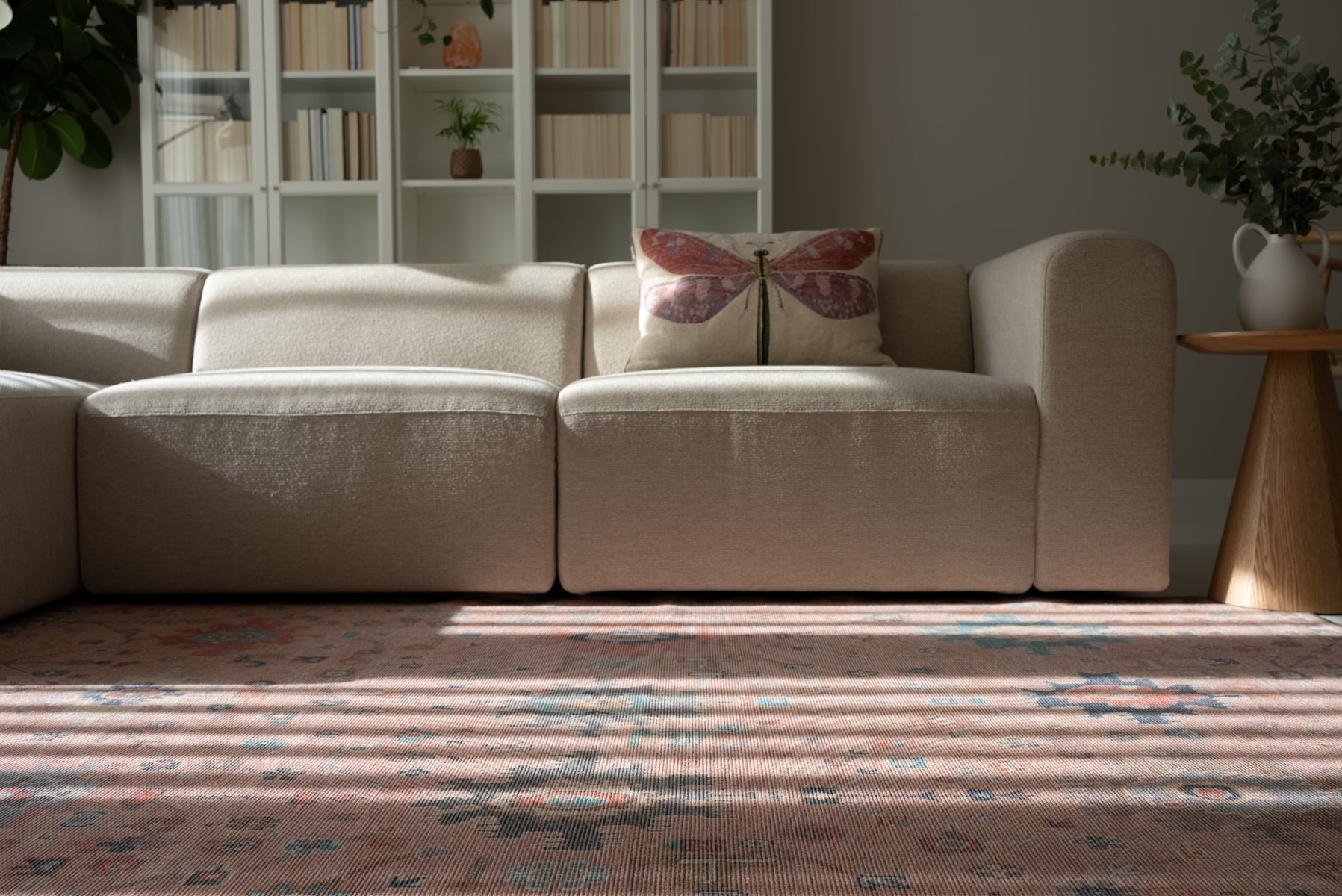 Dieser neutrale Teppich ist vielseitig und eignet sich hervorragend als Teppich für einen Eingangsbereich, Schlafzimmer oder Wohnzimmer, sowohl in modernen als auch in traditionellen Interieurs.