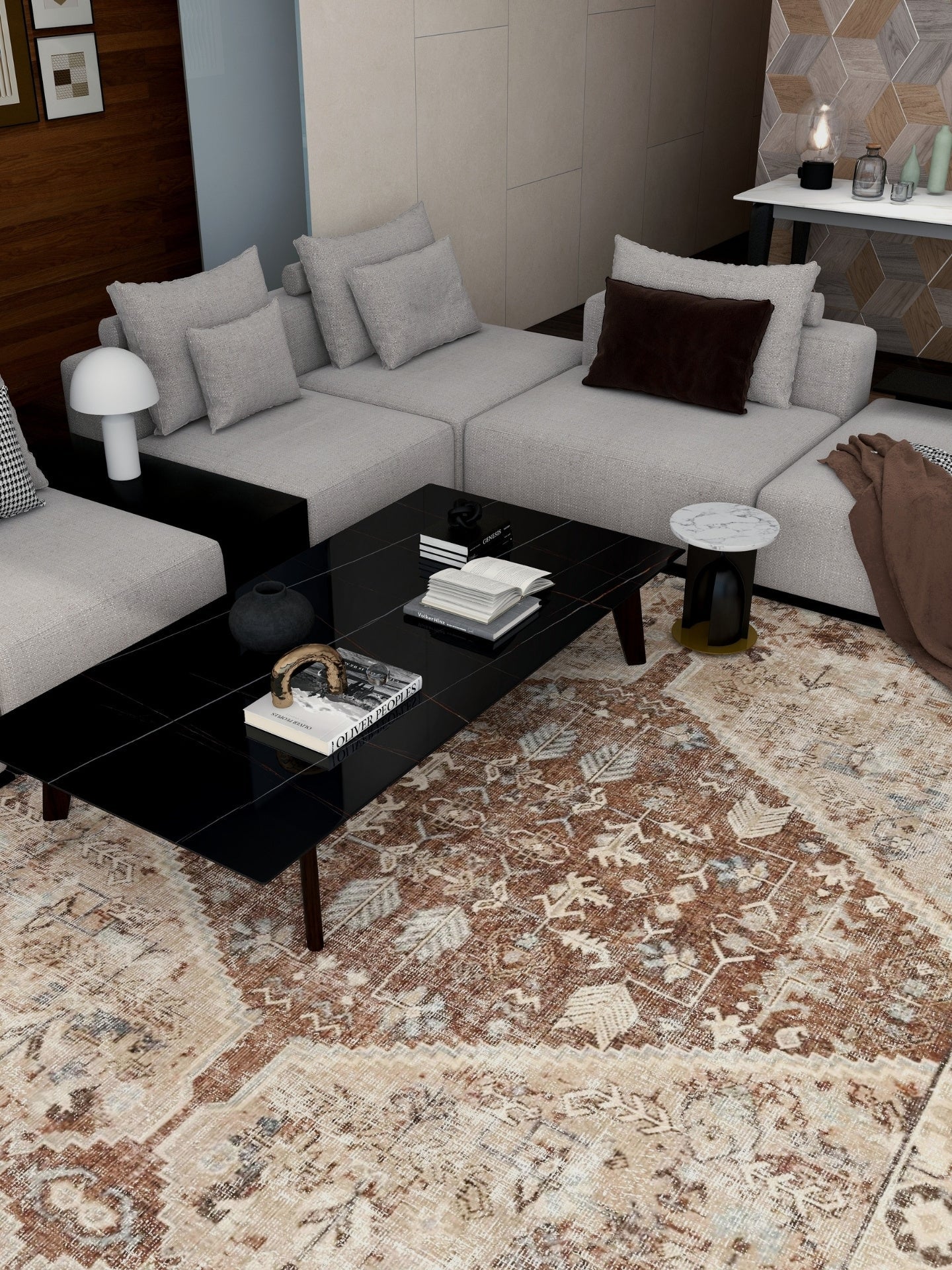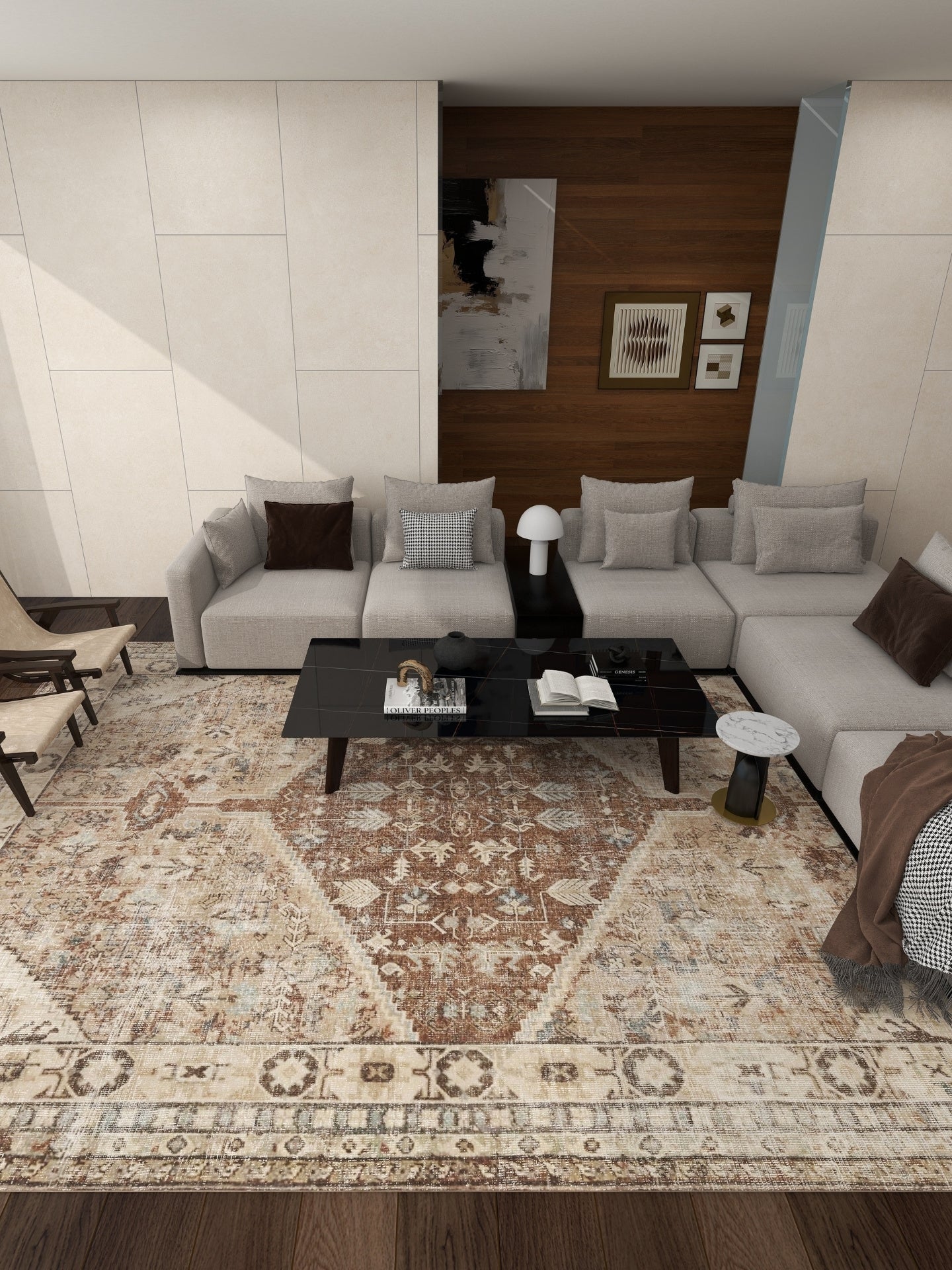 Dieser neutrale Teppich ist vielseitig und eignet sich hervorragend als Teppich für einen Eingangsbereich, Schlafzimmer oder Wohnzimmer, sowohl in modernen als auch in traditionellen Interieurs.