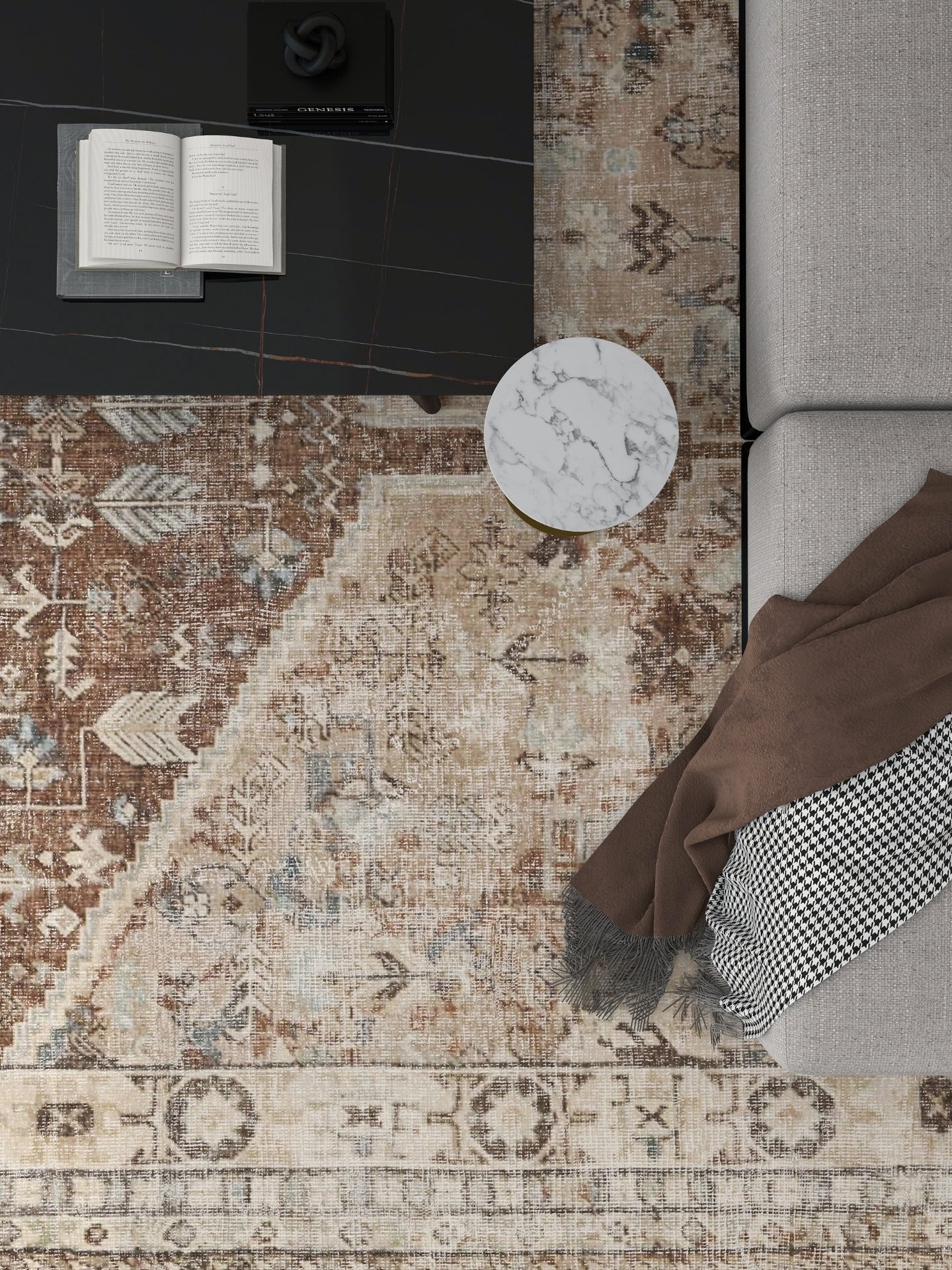 Die Teppiche aus der Vera Kollektion bestehen zu 80% aus recycelter Baumwolle und zu 20% aus Polyester. Sie sind 100% recycelbar und umweltfreundlich.