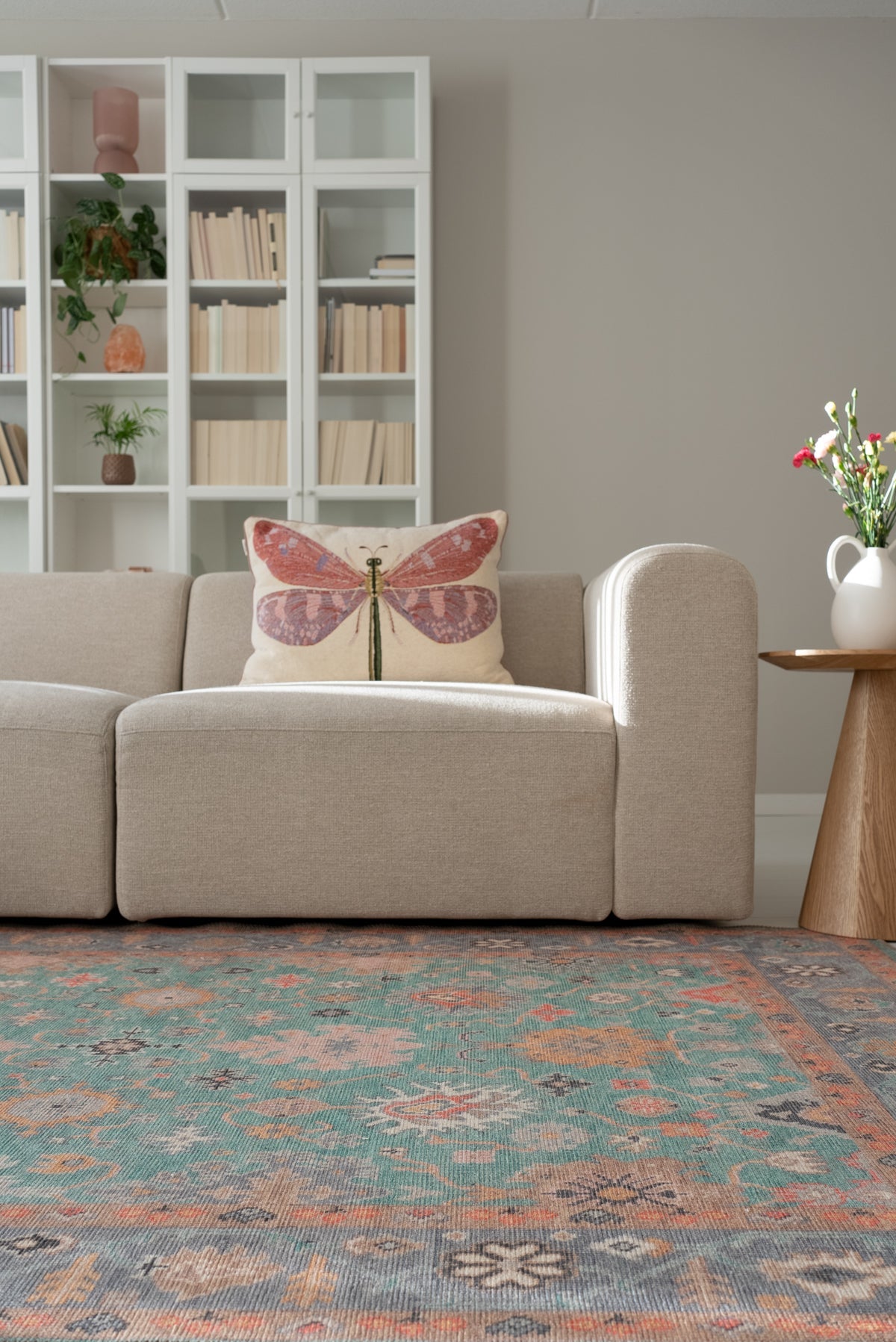 Die Teppiche aus der Vera Kollektion bestehen zu 80% aus recycelter Baumwolle und zu 20% aus Polyester. Sie sind 100% recycelbar und umweltfreundlich.
