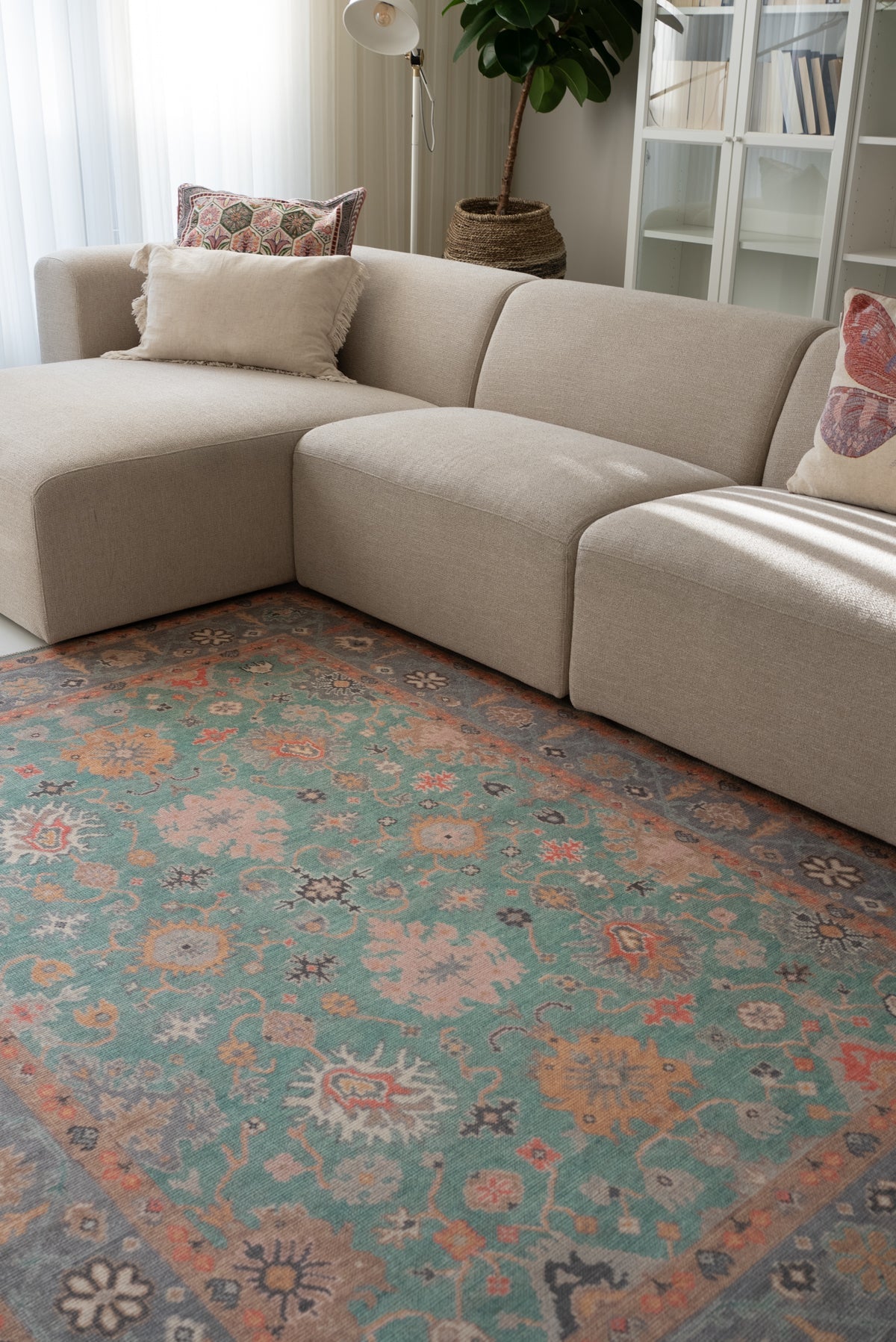 Dieser neutrale Teppich ist vielseitig und eignet sich hervorragend als Teppich für einen Eingangsbereich, Schlafzimmer oder Wohnzimmer, sowohl in modernen als auch in traditionellen Interieurs.